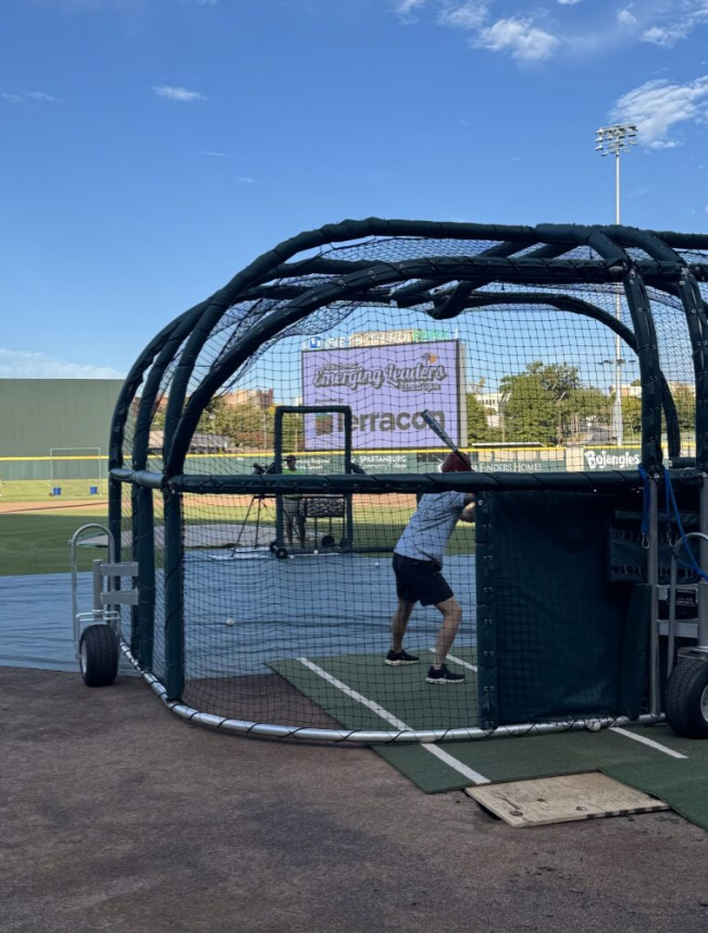 A Fifth Third Park staff member to operate the pitching machine.